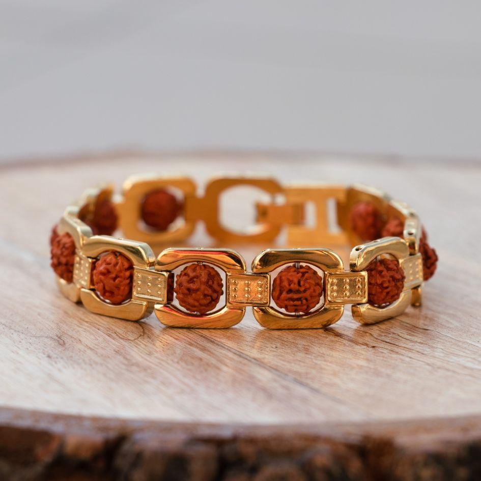 5 Mukhi Rudraksha Bracelet In Designer Gold Plated Metal