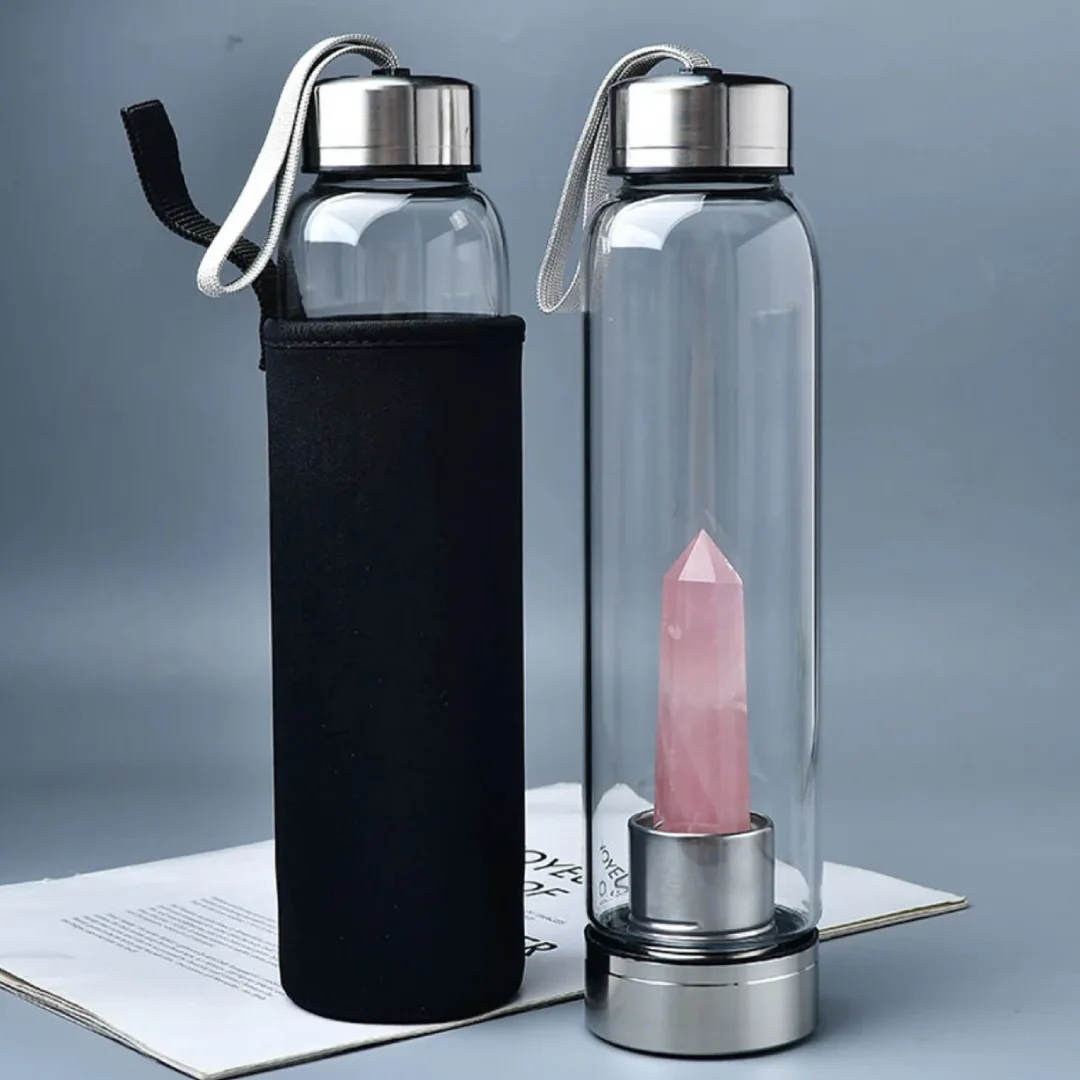 What is a crystal water bottle infuser? A crystal elixir, or crystal-infused water, is a simple yet effective way of working with the energy of crystals and gemstones. When pure water is infused with crystal vibrations, it is then charged with the natural properties of the stone.