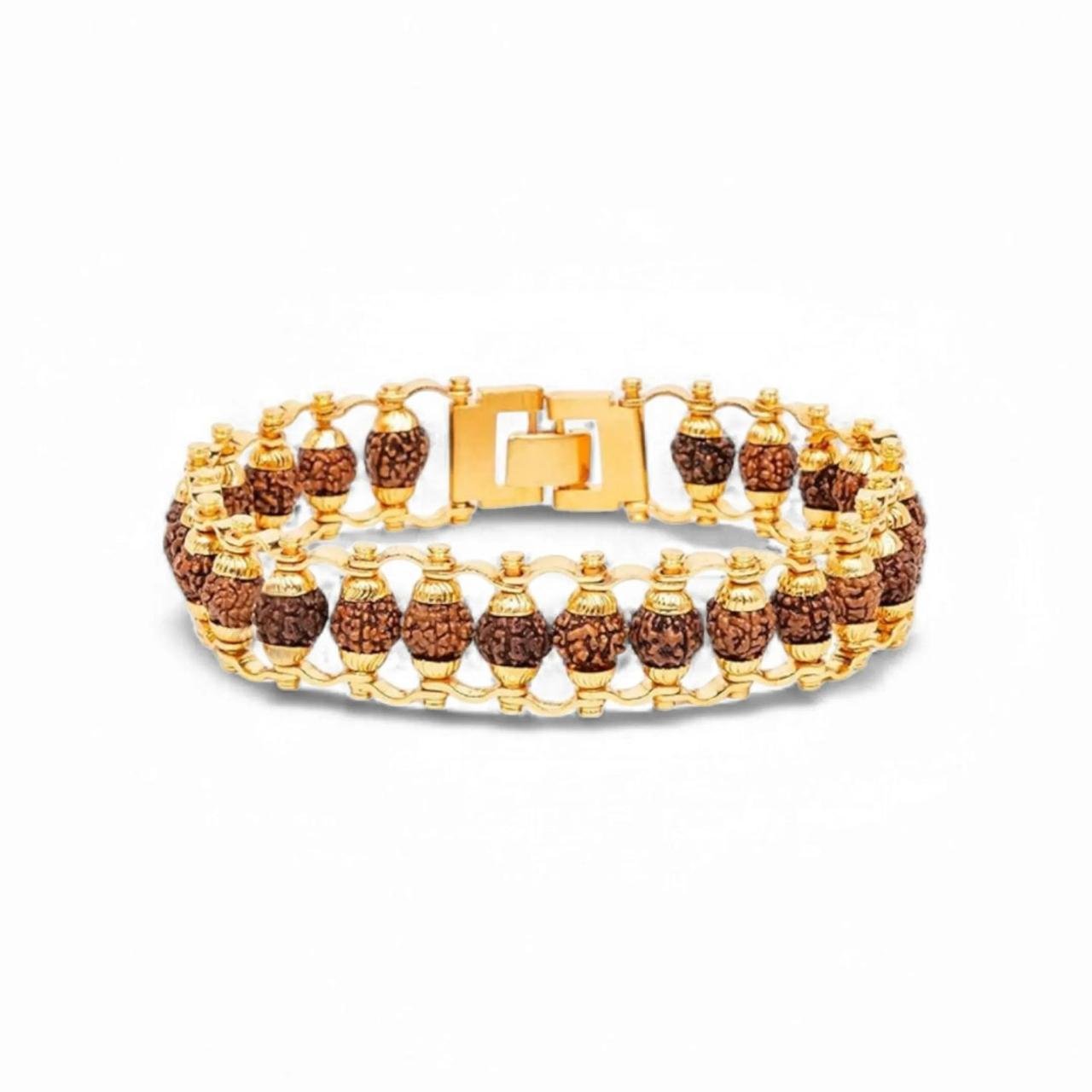 Adorn yourself with our Designer Gold Plated Rudraksha Bracelet and experience the perfect combination of style and spirituality.
