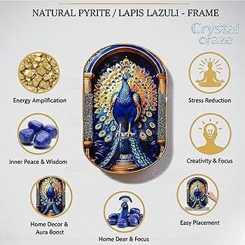 Be the first to review “Pyrite–Lapis Peacock Frame, often designed for home and office decor to attract positivity and prosperity”