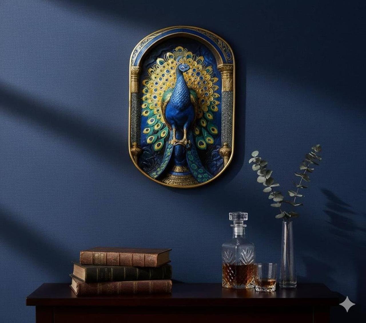 Pyrite–Lapis Peacock Frame, often designed for home and office decor to attract positivity and prosperity
