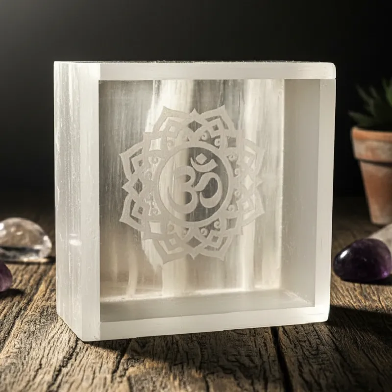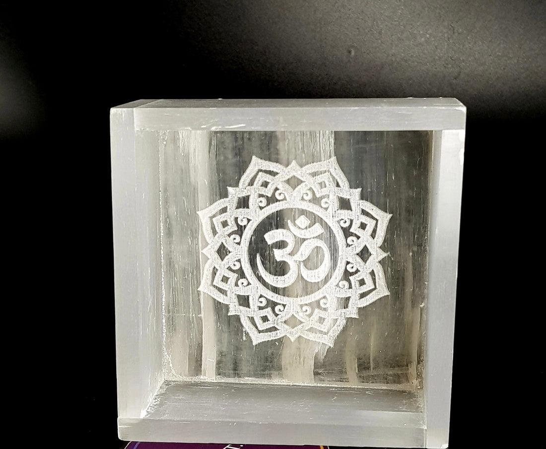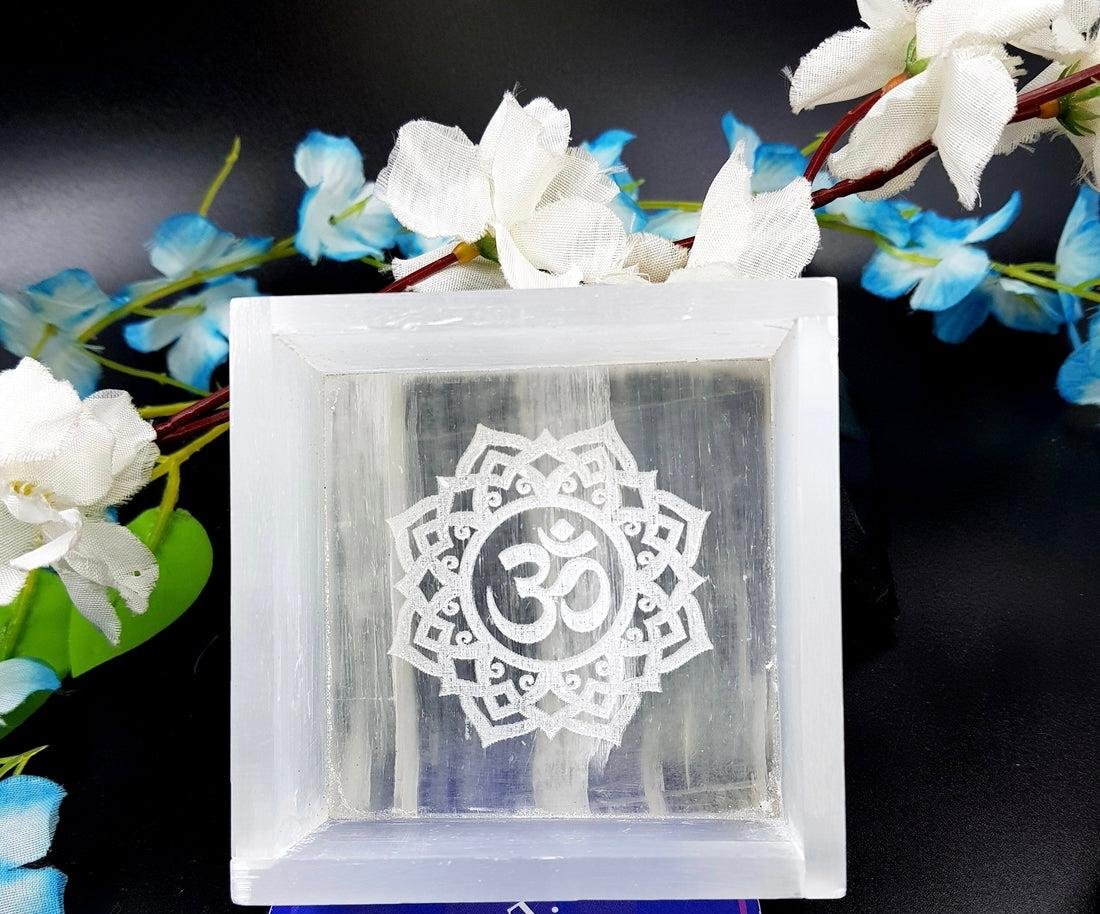 Selenite Om Symbol Square Charging Bowl