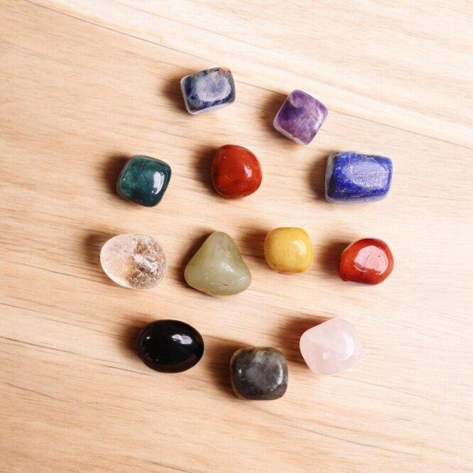 Our human body has 7 major and 5 minor a total of 12 chakras which determind health and well being.12 Chakra Tumble stone which includes crystals (1) Clear Quartz (2) Labradorite (3) Amethyst (4) Sodalite (5) Lapis Lazuli (6) Rose Quartz (7) Green Aventurine (8) Golden Quartz (9) Carnelian (10) Red Jasper (11) Bloodstone (12) Smoky Quartz. This Crystals for Healing and energize our chakras and help us to lead a healthy life,Motivate our life.